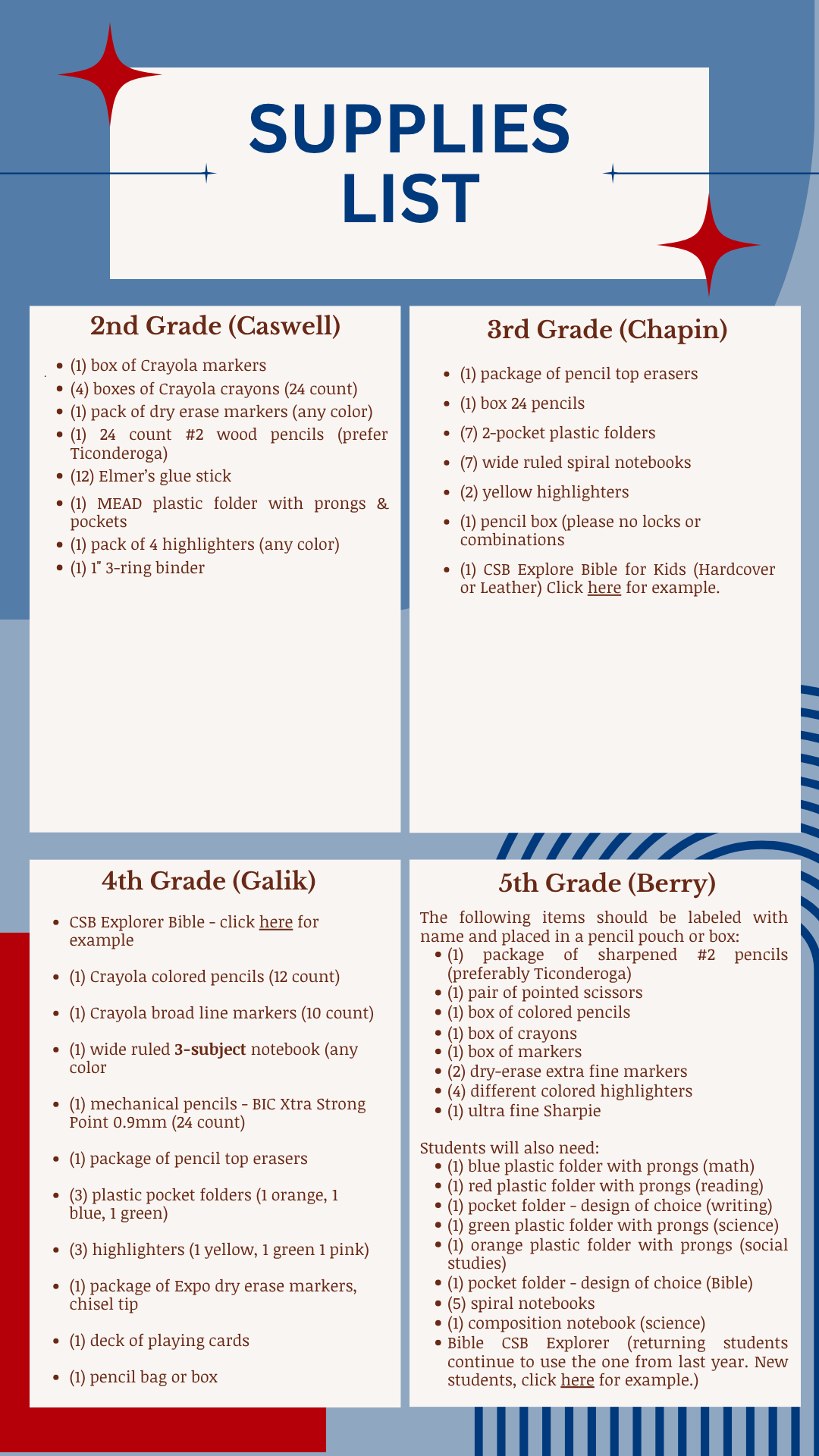 Supply Lists
