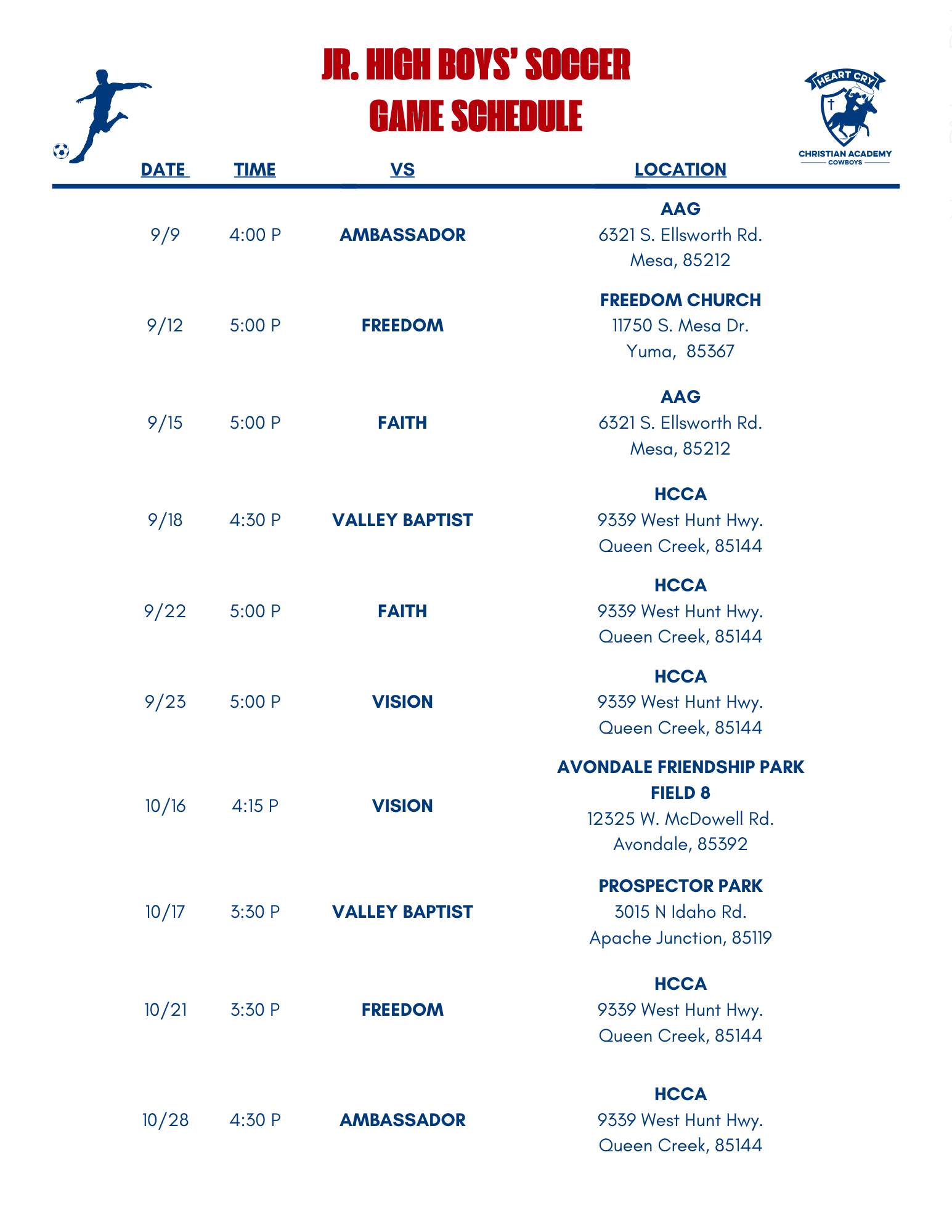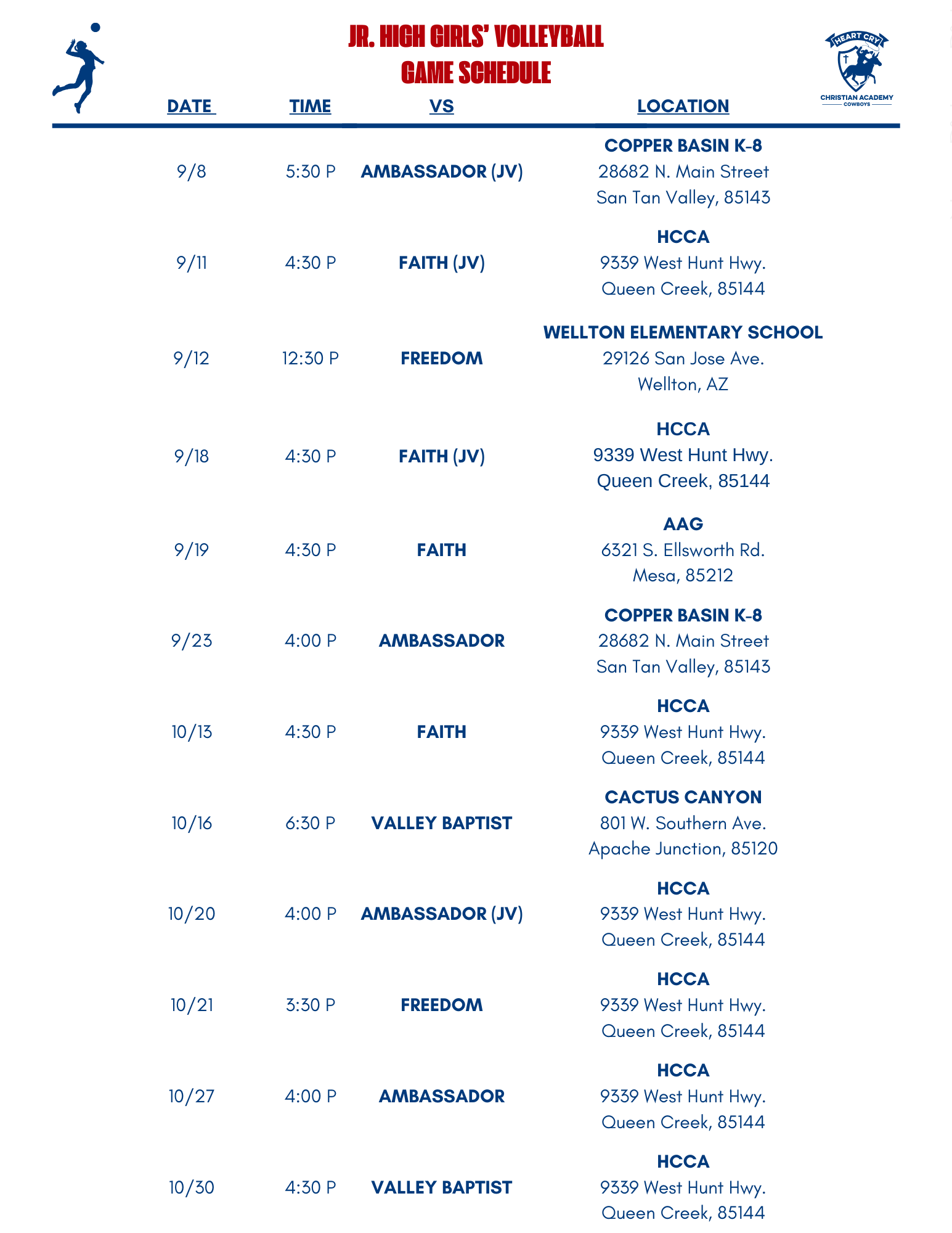 Print the Fall Jr. High Girls Volleyball Game Schedule